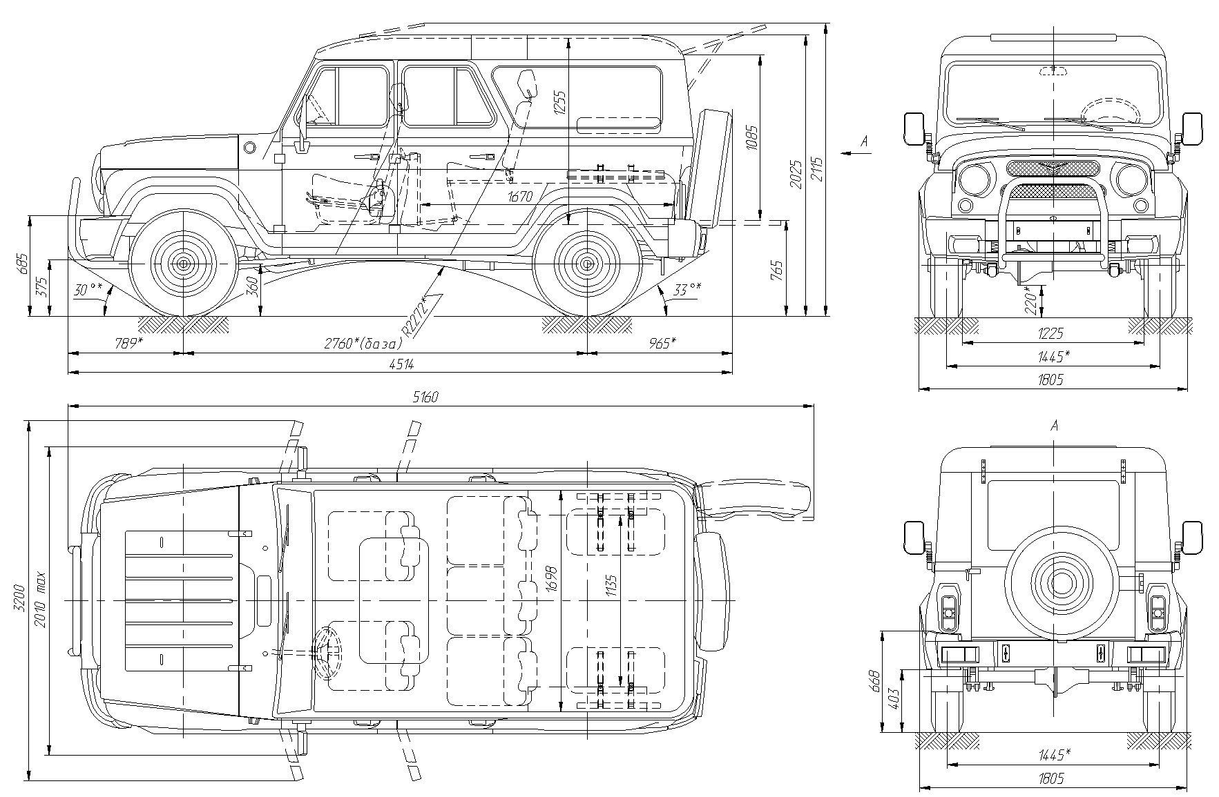 В сравнении с общеизвестным автомобилем УАЗ-31512 имеет удлиненную базу (2760 мм). Применение передней пружинной подвески, задней подвески на малолистовых рессорах, улучшенной отделки салона позволили достичь высокого уровня комфортабельности.